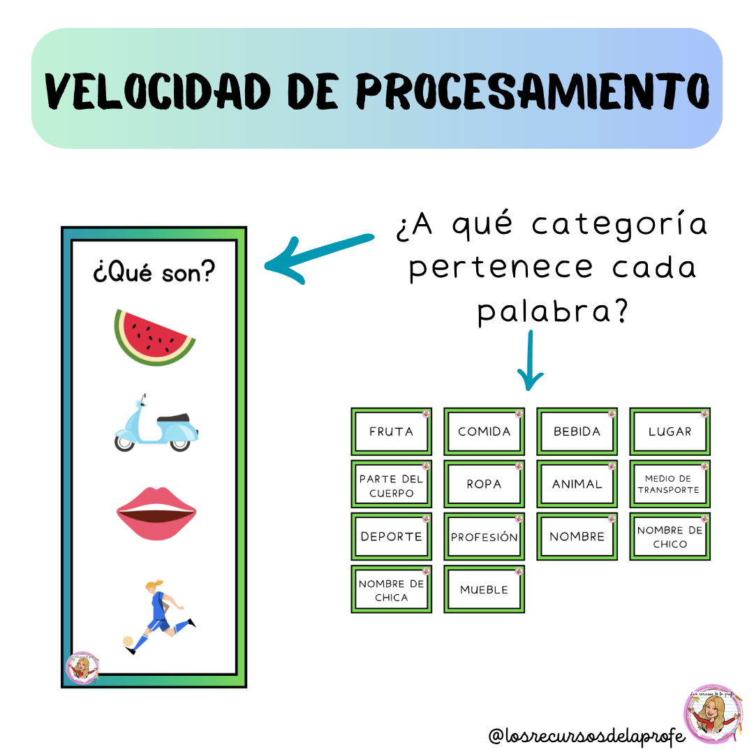 - Velocidad de acceso al léxico, dado que se ha de recordar lo que es cada imagen y la categoría a la que pertenece.